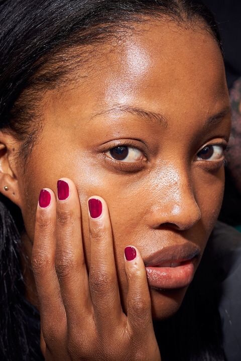 Manicurists took inspiration from the drinks cabinet for next season, with a wealth of warm purple and burgundy shades turning our thoughts to red wine. Rich raspberry shades were the colour of choice at Molly Goddard – a fun and feminine yet bold alternative to red that perfectly suited the brand.